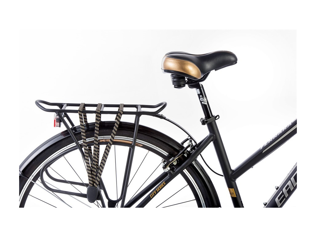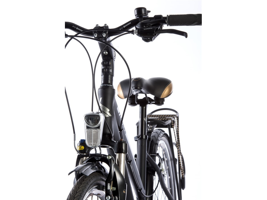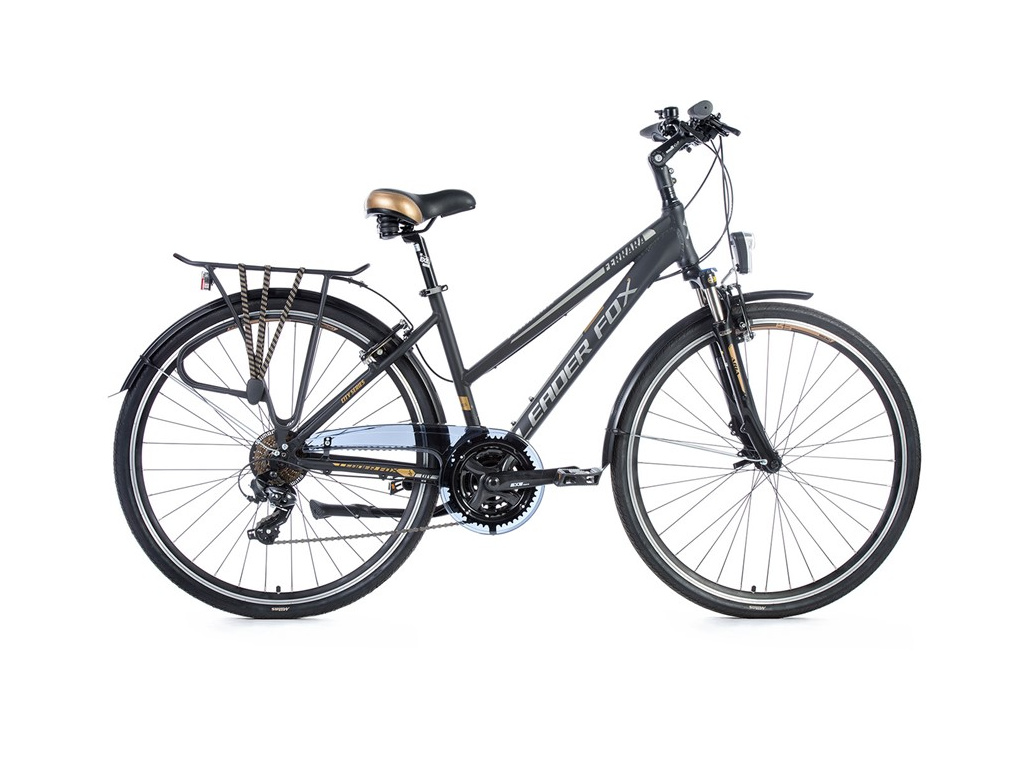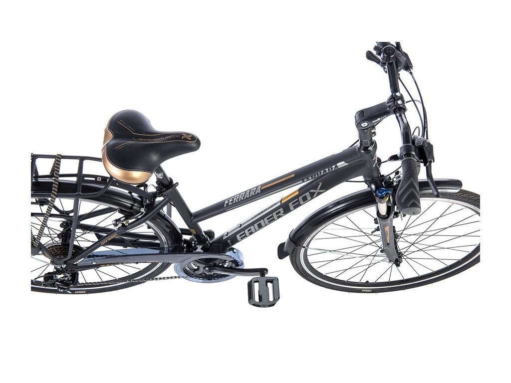 Leader Fox Ferrara Lady je plne vybavený dámsky trekingový bicykel vhodný do mesta aj do prírody. Jeho základom je ľahký hliníkový rám, ktorý je vybavený kvalitnými komponentmi Shimano a uzamykateľnou prednou vidlicou. Ferrara je vybavená blatníkmi