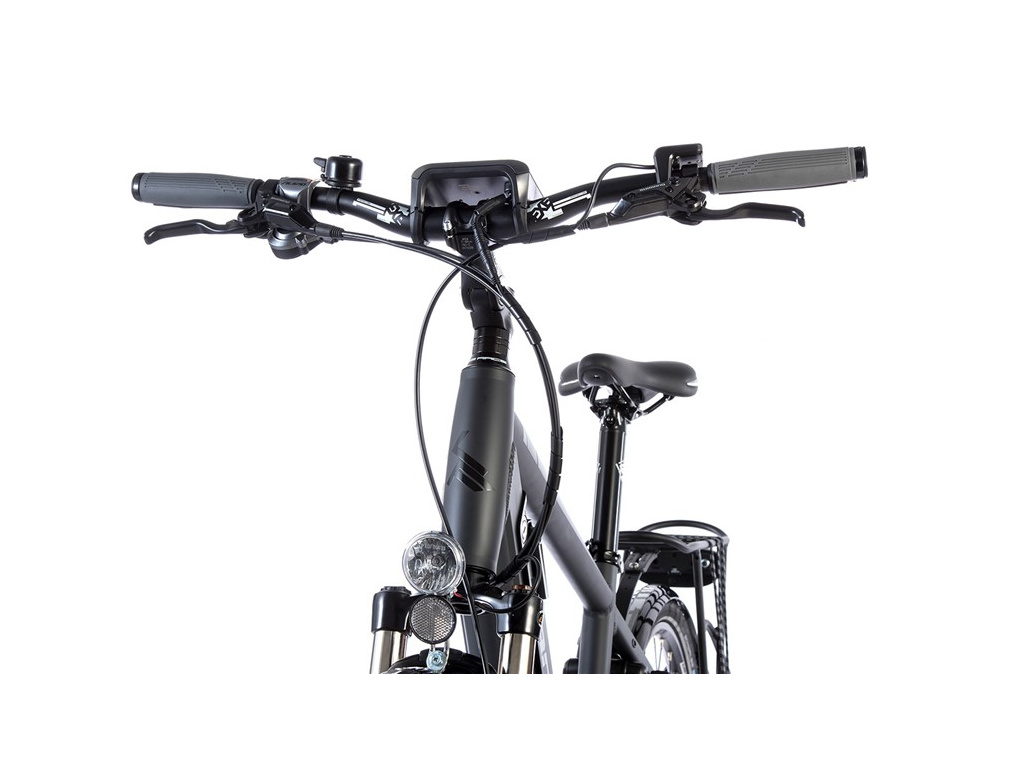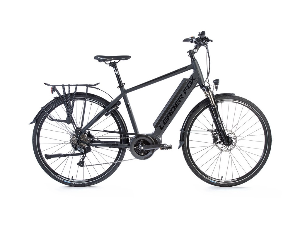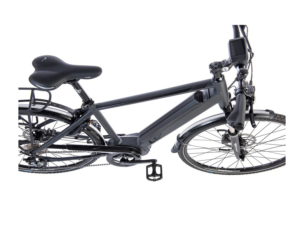 Pánsky trekingový elektrobicykel Leader Fox LUCAS s výkonným stredovým motorom Bafang Max Drive. Medzi nové funkcie patrí integrovaná vysokokapacitná 576 Wh rámová batéria a prehľadný LCD displej na riadidlách, ktorý zobrazuje všetky informácie o jaz