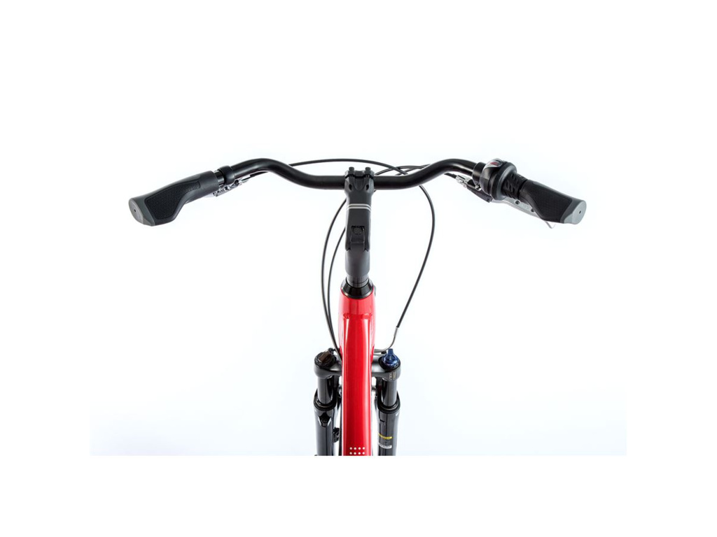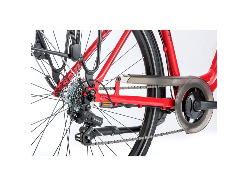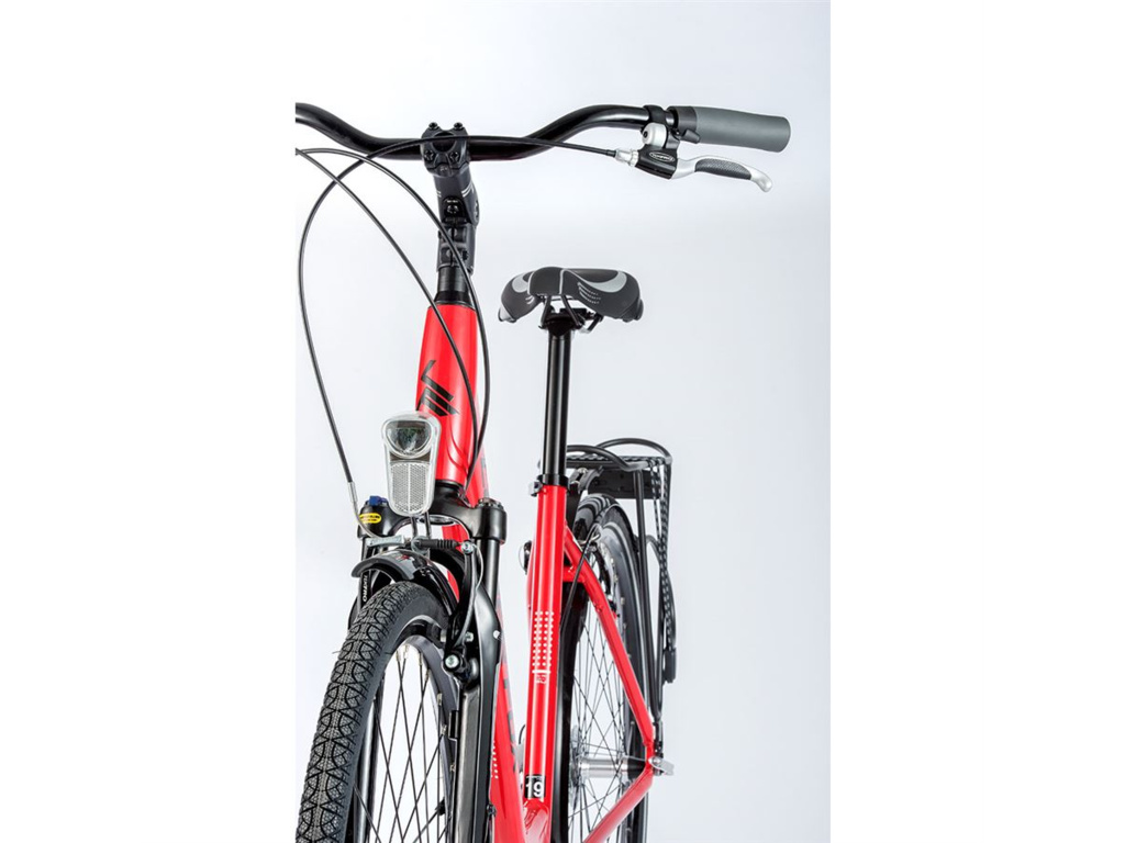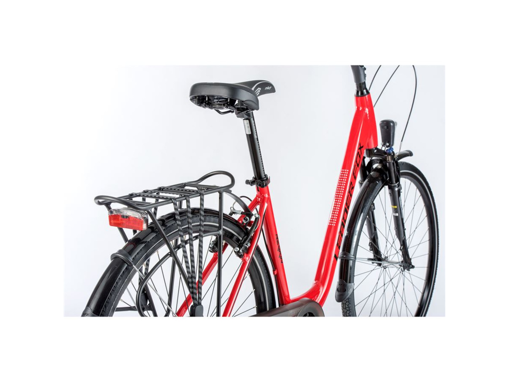 LEADER FOX Region je trekingový bicykel, ktorý uľahčuje pohyb po meste vďaka osvetleniu LED, blatníkom, nosiču, stojanu a zvončeku. Má hliníkový rám s upravenou geometriou a chýbajúcou hornou rámovou trubkou, aby sa bicykel pohodlnejšie ovládal a zvládal cestu hustou mestskou premávkou. Okrem toho je model vybavený radením S-RIDE s prevodmi 1x7, ktoré uľahčuje zdolávanie miernych kopcov.