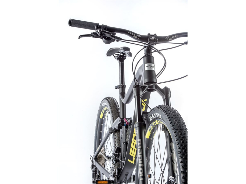 Celoodpružený cross country bicykel Leader Fox Harper. Vybavené odpružením Manitou a kolesami veľkosti 29". Všetky modely Leader Fox sa montujú v montážnej hale v Českých Budějoviciach.
