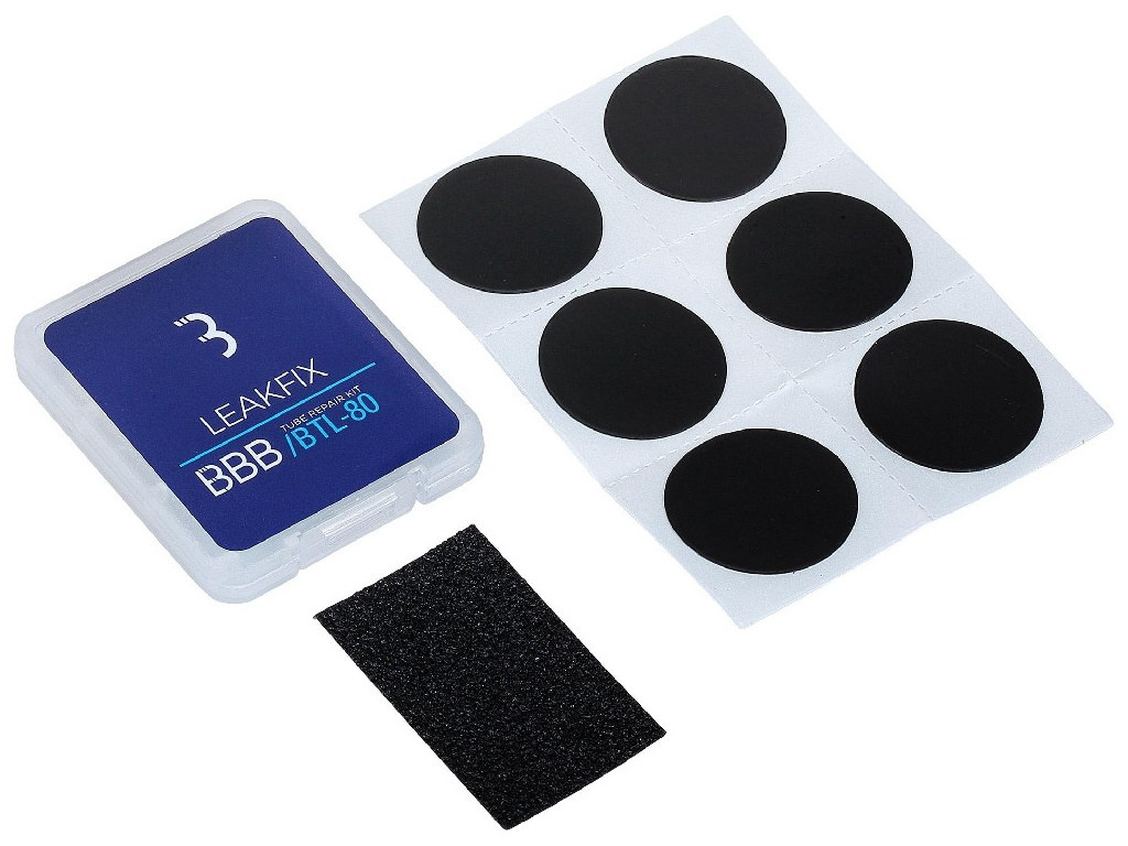 Samolepiaca súprava BBB LeakFix sa používa na opravu poškodených vnútorných duší. Na opravu nie je potRebné žiadne lepidlo, opravné záplaty sú samolepiace. Súprava obsahuje brúsny papier a opravné