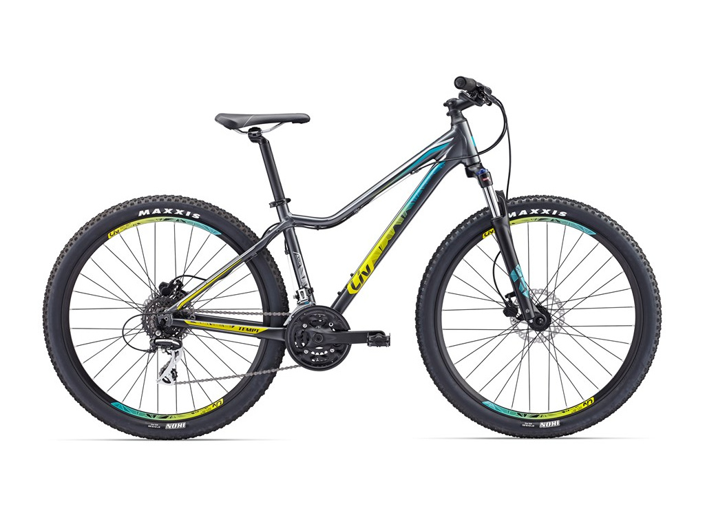 Dámsky bicykel Giant Tempt je ideálnou voľbou pre športovo založené cyklistky. Model Tempt 27.5 je určený na pohodovú jazdu pre zábavu alebo udržiavanie kondície, ale zvládne aj ľahší cyklomaratón. Ľahký rám AluxX ponúka príjemne ženskú geometriu pre pohodlnú jazdnú pozíciu a 27,5" kolesá kombinujú najlepšie vlastnosti 26" a 29" veľkosti. Čo sa týka výbavy, o nerovnosti a terén sa postará odpružená vidlica so zdvihom 100 mm a v náročnejších pasážach oceníte spoľahlivé kotúčové brzdy.