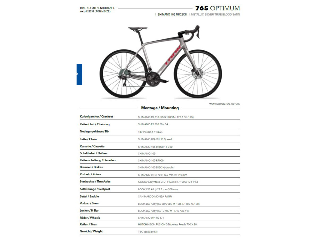 Bicykel 765 OPTIMUM je ľahký a rýchly model zameraný na výdrž. Neuveriteľne univerzálny, ponúka dokonalú rovnováhu medzi výkonom a pohodlím. Výrazný, multifunkčný cestný bicykel navrhnutý na preteky na ultra dlhé vzdialenosti.