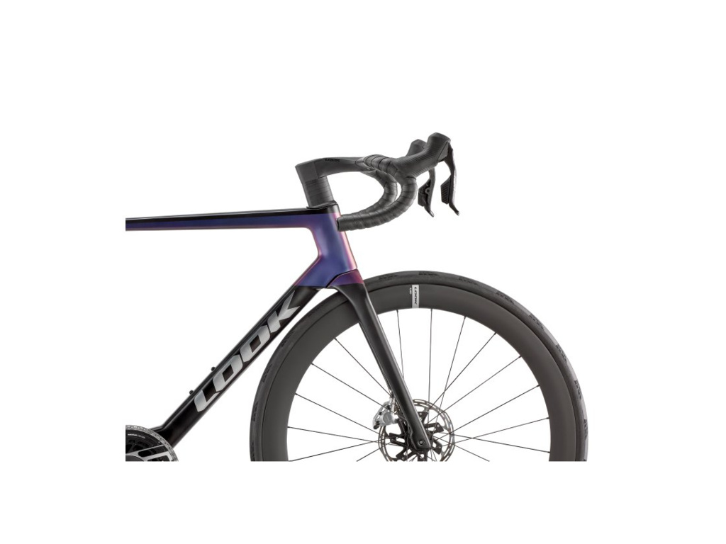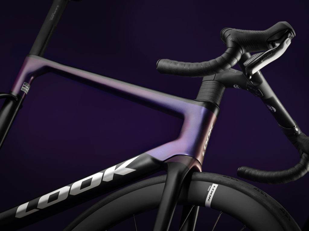 Rám prešiel náročným testovaním v aerodynamickom tuneli – každý profil, každé spojenie aj umiestnenie košíkov na fľaše boli navrhnuté s cieľom maximálne znížiť odpor vzduchu. Integrovaná sedlovka, elegantné vedenie kabeláže, ostré línie – všetko podriadené jedinému cieľu: maximálnej rýchlosti. Základom rámu je vlastná karbónová zmes s vysokým podielom Ultra High Modulus vlákien, ktorá poskytuje extrémnu tuhosť pri zachovaní nízkej hmotnosti. Každý detail konštrukcie – od tvaru až po hrúbku jednotlivých vrstiev – bol starostlivo ručne spracovaný v dielňach LOOK Cycle.