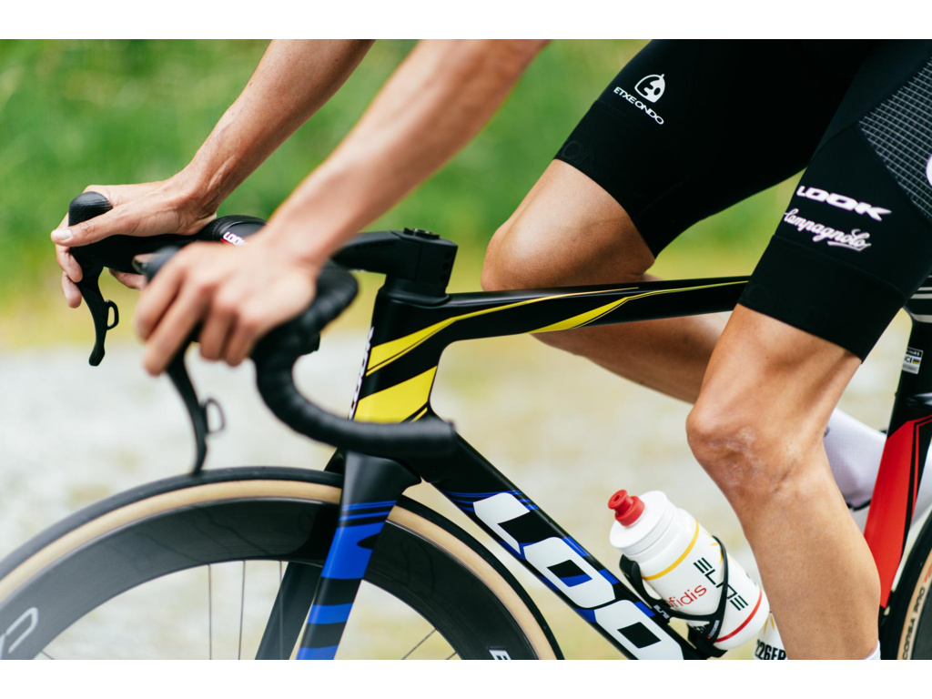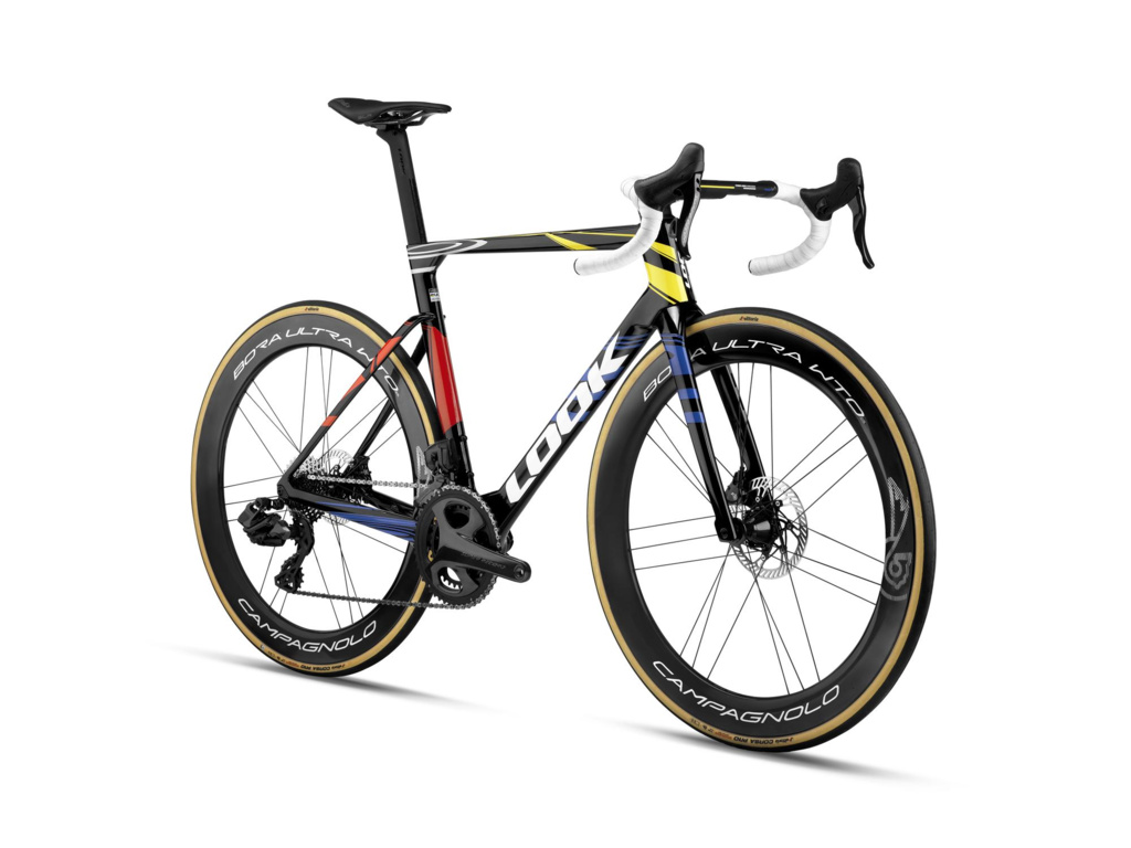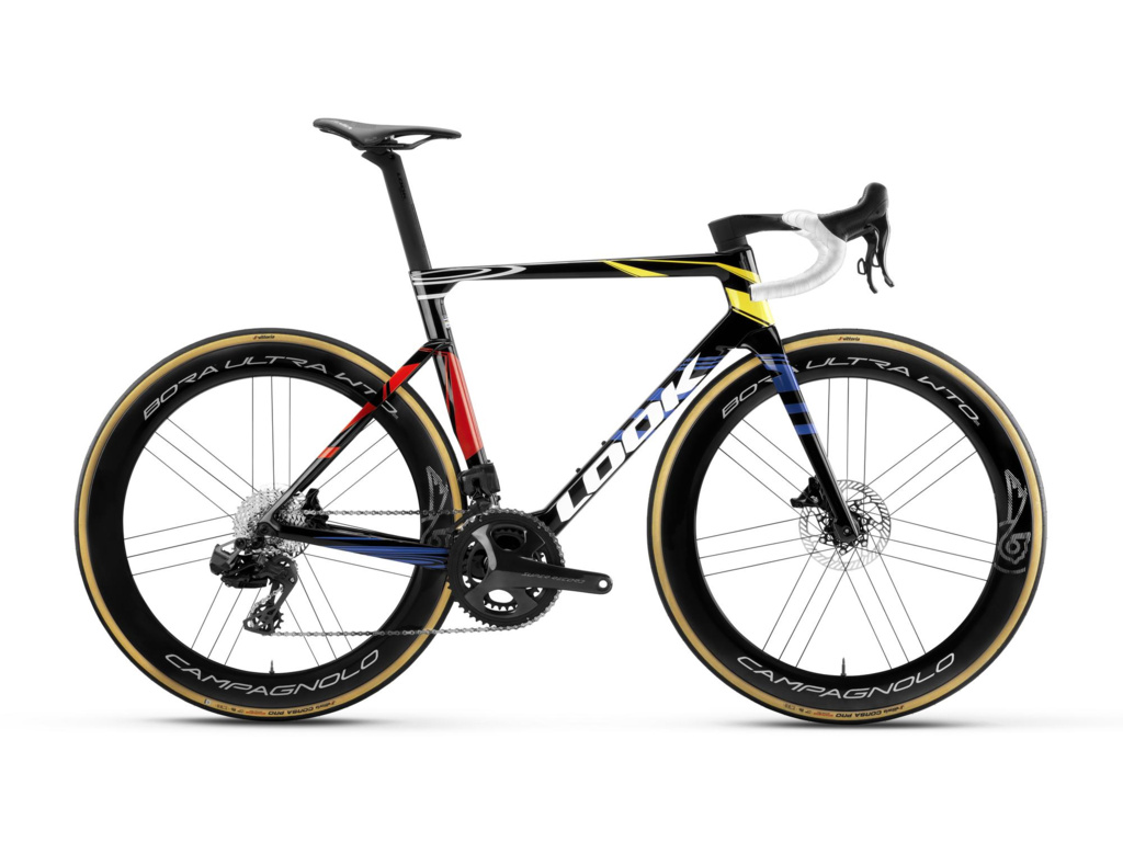 O perfektný prenos výkonu a aerodynamiku sa starajú karbónové kolesá Campagnolo Bora Ultra WTO 60 Team Edition v špeciálnom pretekárskom farebnom vyhotovení, obuté do plášťov Vittoria Corsa Pro. Kombinácia, ktorú ocení každý, kto jazdí na hrane. Čierny lak navyše šetrí 40 gramov a necháva vyniknúť ikonickým farebným akcentom inšpirovaným Mondrianovým štýlom, ktorý je pre značku LOOK typický.