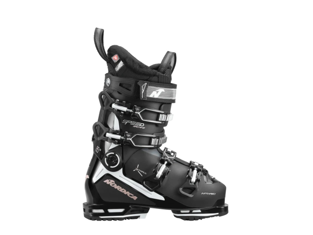Nordica Speedmachine 3 85 W přináší legendární all-mountain výkon v komfortním dámském provedení, které umožní celodenní lyžování bez kompromisů. Díky přepracované konstrukci a měkčí flexi bota nabízí plynulou, přesnou jízdu s mimořádným pohodlím a snadným ovládáním. Technologie 3 Force Construction optimalizuje přenos energie z nohy na lyži a zvyšuje efektivitu, zatímco střední šířka kopyta 100 mm zaručuje vyvážené padnutí.