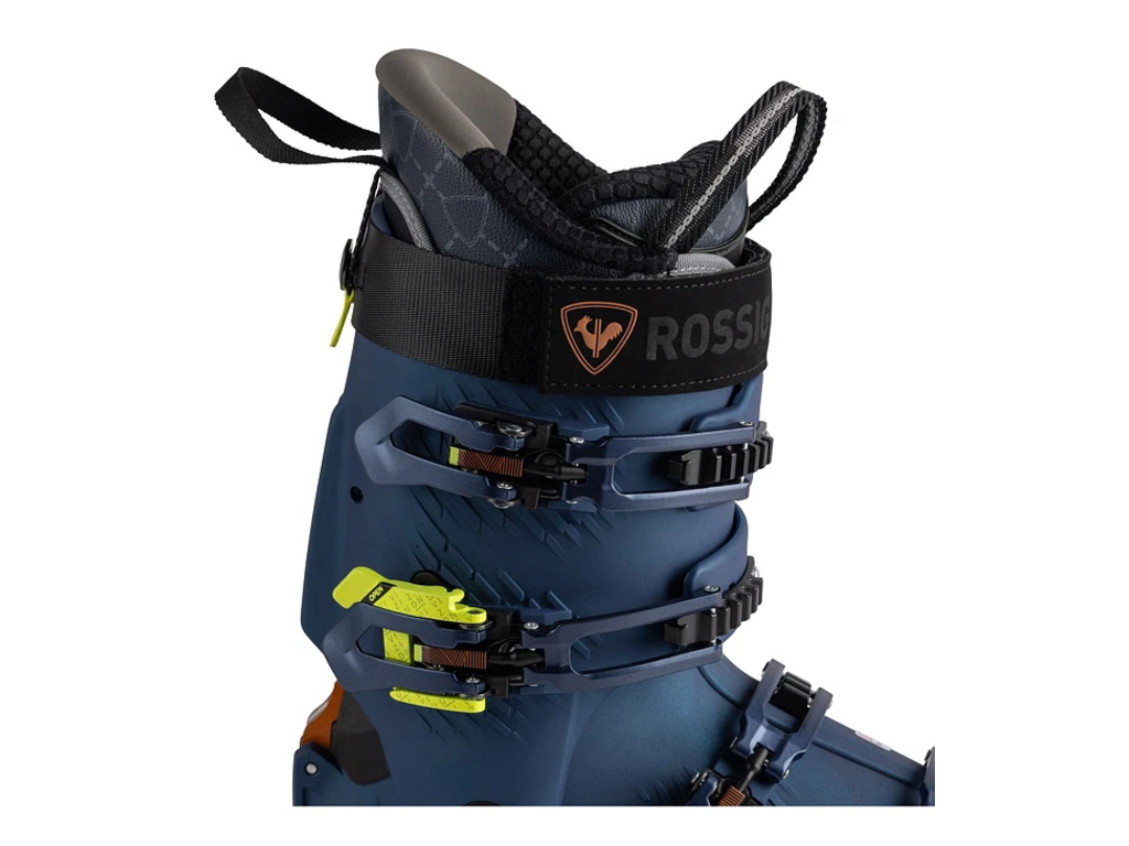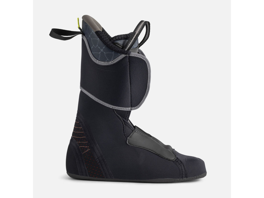 Skořepina s High Volume Fit (šířka 102 mm) je navržena pro lyžaře s širšími chodidly, kteří chtějí pohodlí bez obětování přesnosti. Bi-Injected Spoiler kombinuje pevný PU pro jistou oporu a přenos energie s měkkými pryžovými zónami, které se při zapnutí přirozeně přizpůsobí tvaru lýtka a utěsní botičku. Rozšířený zadní kloub zajišťuje hladký pohyb při nazouvání i vyzouvání.