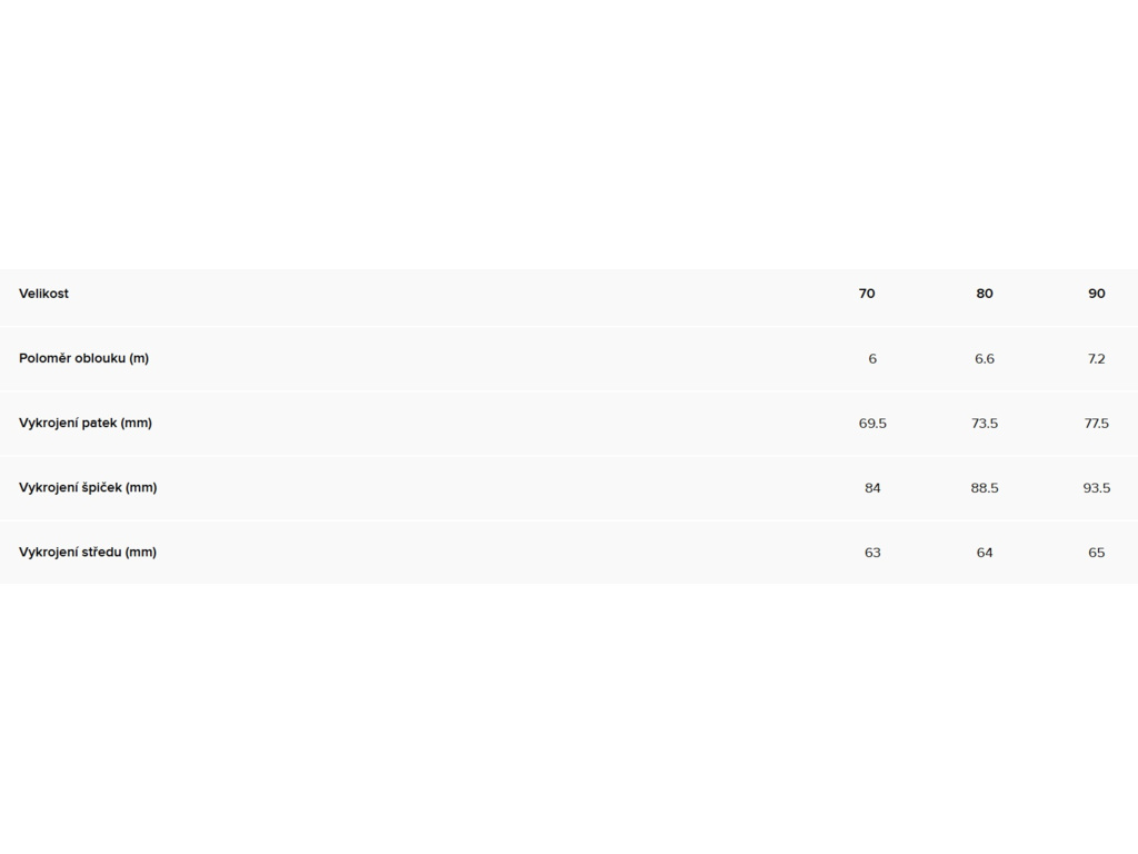 Úhly hran: 87° boční / 1,3° odklon od skluznice
