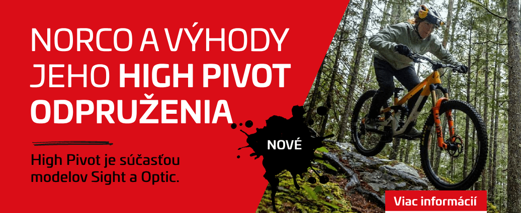 High Pivot je od minulého roku súčasťou všetkých modelov Norco Sight a Optic. Technológiu, ktorá bola predtým vyhradená skôr pre zjazdové bicykle alebo enduro, tak dnes môžu využívať aj trailové bicykle. Vďaka tomu majú lepšie tlmenie nárazov, trakciu a stabilitu v technickom teréne.