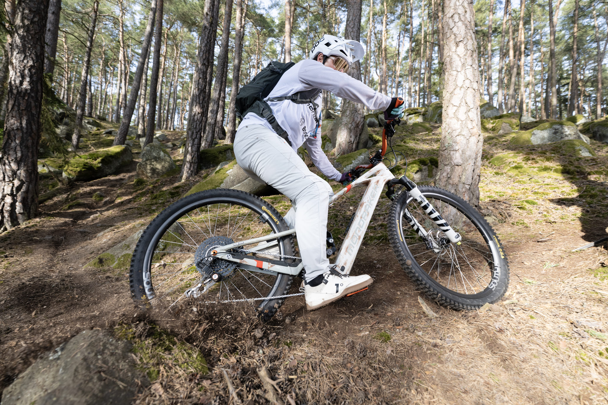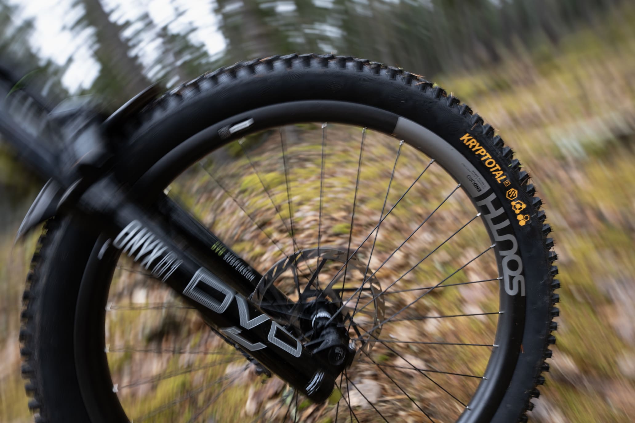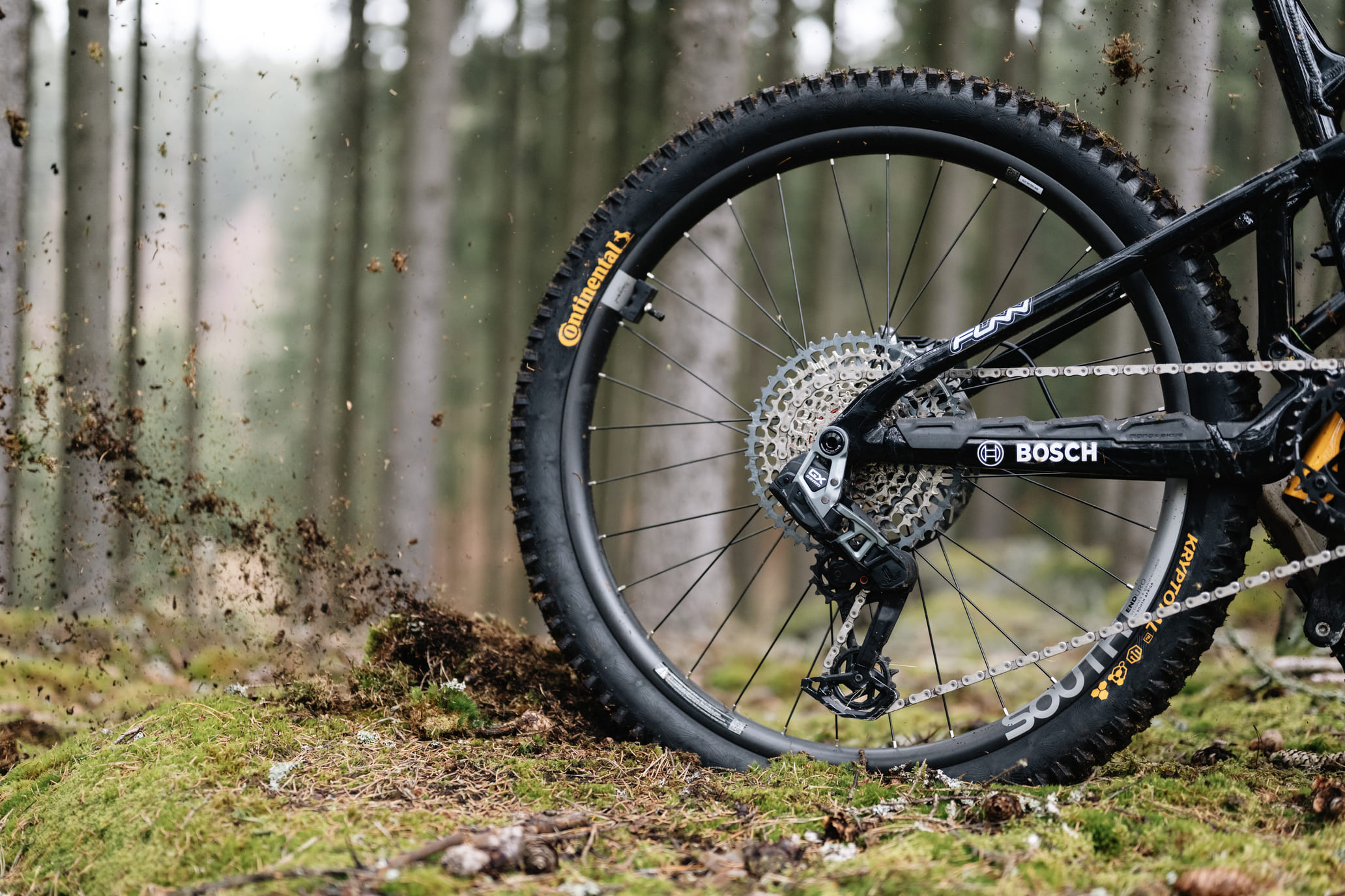 Xynotal na zadnom kolese je voľba primárne pre tvrdý a suchý podklad. Vďaka nižšiemu profilu dezénu má nižší valivý odpor, zatiaľ čo skosené hrany zaručujú okamžitú odozvu pri brzdení. Druhý e-bike obul kompletne do Kryptotalu: supermäkká zmes a enduro konštrukcia vpredu, mäkká zmes a downhill konštrukcia vzadu.