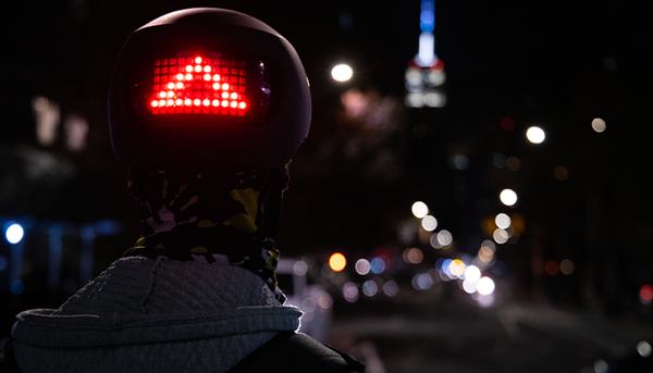 Model MATRIX je typická mestská prilba. Má integrované predné svetlo a veľký LED display vzadu. Vďaka zabudovaným predným aj zadným blinkrom s bezdrôtovým ovládačom na riadidlách je táto cyklistická prilba perfektnou voľbou na elektrokolobežky, na ktorých sa pri ukazovaní smeru rúk zle balansuje.