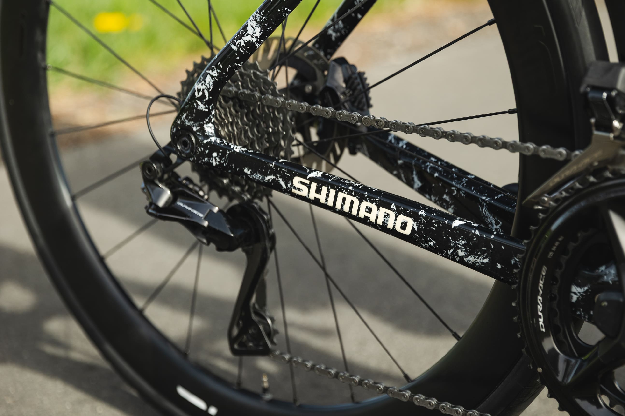 „Vozím veľkosť 56, takže ‘L’. Sme sponzorovaní Shimanom, takže na pretekoch máme Shimano páky ‘Durové’ (Dura-Ace, pozn. red.),“ pokračuje Pavel. „Bežne máme aj pretekárske kľuky Dura-Ace s wattmetrom, ale na tréning mám teraz len Ultegru.“ Dĺžka kľúk je 172,5 mm. Kolesá používa karbónové s výškou ráfika 50 mm, obuté do bezdušových plášťov určených na tréning.
