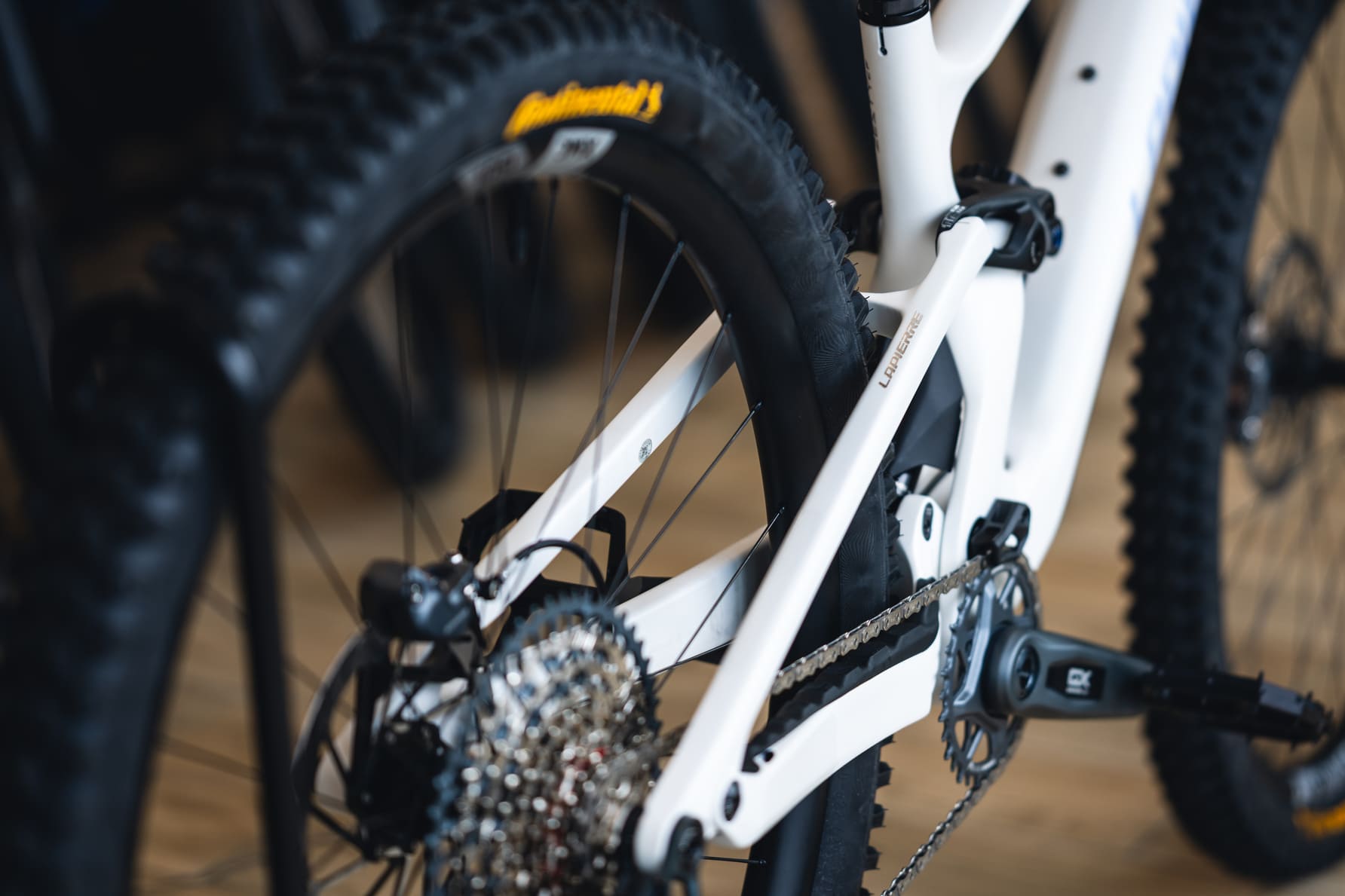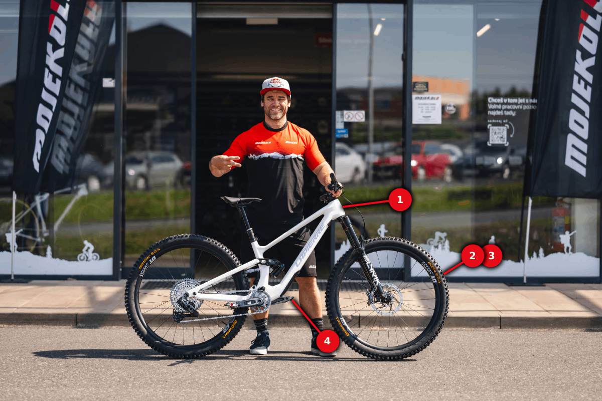 Nabúchaný Francúz má špičkové odpruženie od RockShox, zdvihy 150 mm vpredu aj vzadu a najnovšiu elektronickú sadu Sram GX Eagle T-Type AXS. K Vávrovi dorazil obutý do overených plášťov Continental. Vpredu sa nachádza plášť Continental Argotal s tvrdšou zmesou Endurance a trailovou konštrukciou navrhnutou pre trate so sypkým povrchom, hlinou a voľnými kameňmi. Rovnakú zmes aj konštrukciu, no iný vzor má plášť Continental Kryptotal-R – plášť optimalizovaný pre zadné kolesá. Do bezdušových plášťov sme Vávrovi nahodili aj vložky Pepi's Tire Noodle Super Rokk Line, aby mohol drviť traily bez obáv z prerazenia alebo poškodenia ráfikov.