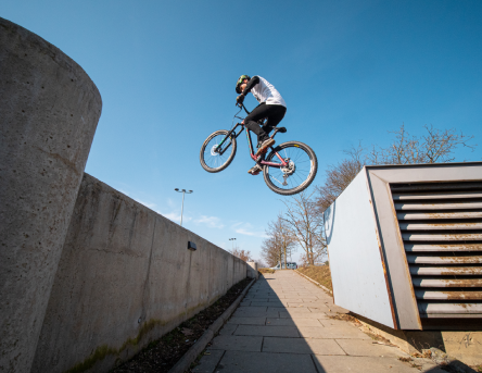 Na prvú jazdu nikdy nezabudnem. Rád jazdím na svojom "celopére" aj veľmi technické street-trialové veci a doteraz som jazdil na bicykli s nižšími zdvihmi a dosť krátkym rámom, ktorý bol na tento štýl super. Sight má dlhšiu top tube a reach než som bol doteraz zvyknutý. Navyše má aj dosť položený hlavový uhoľ vidlice 63,5 °, takže som trochu tušil, že na streetové a trialové jazdenie bude pre ovládanie trochu ťažší, ale v Bikeparku a pri skokoch mi to dokonalo vynahradí. Prvá jazda so Sight teda bola na "streete", kedy som skákal po múrikoch a trialovo preskakoval po zadnom kolese cez zábradlie a pod. A bezo srandy som úplne prevalcoval všetky prekážky, ktoré som počas tej jazdy stretol. Vrátane niekoľkých výskokov z "bunnyhop" na vysoké múriky, ktoré som doteraz na celoodpruženom bicykli nedokázal nikdy dať. Vôbec som neveril tomu, čo sa deje. Sight mi tak dokonale padol do ruky, že som sa hneď pri prvej jazde posunul o úroveň vyššie.