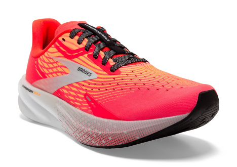 Bežecká topánka Brooks Hyperion Max je na prvý pohľad aj pocit rýchla topánka. Kolíska v prednej časti zaisťuje ľahký prechod od došľapu k odrazu. Pre maximálny efekt výrobcovia pri Hyperione MAX použili aj špeciálne zakrivenie Rapid Roll pre dokonale hladké zhoupnutie chodidla do odrazovej fázy. Nízka hmotnosť 220 g len umocňuje pocit bleskového odrazu.