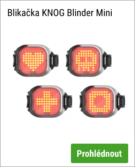 So štýlovým svetlom Knog Blinder Mini za sebou jazdec zanechá unikátny svetelný podpis. Zadná blikačka s výbornou svietivosťou je totiž dostupná v 4 verziách, každá s iným svetelným symbolom. Cyklistkám sa asi zapáči romantické srdiečko, pirátom ciest potom napríklad "svietiaca lebka". Blinder Mini ponúka 7 módov svietenia a blikania, USB nabíjanie, krytie stupňa IP67 a váži iba 17 g. Dostupný je aj ako biele predné svetlo.