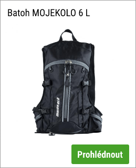 Batoh MOJEKOLO 6 L Small s vakom na vodu obsahuje vodný rezervoár s objemom 2 l, veľké hlavné vrecko a tri bočné vrecká na drobnosti. Súčasťou je aj prídavná sieťka na uchytenie prilby alebo časti oblečenia a reflexné prvky pre lepšiu viditeľnosť. Priedušné ramenné popruhy zaistia, aby mohli miesta pod batohom dýchať, bedrový a prsný popruh sa postarajú o to, aby batoh držal na svojom mieste. K batohu môžete prikúpiť aj sadu na čistenie vodného vaku a máte perfektný darček.