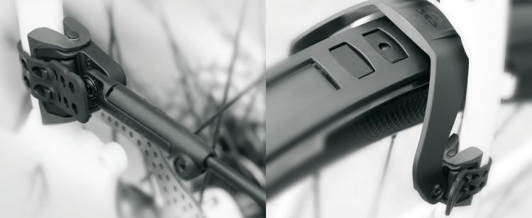 Blatníky držia na bicykli pomocou univerzálneho rámového adaptéra a gumových pásikov, prípadne pásku na suchý zips a na montáž nepotrebujete žiadne náradie. Dostupné sú vo verziách pre 26-27.5 a 29-palcové kolesá.