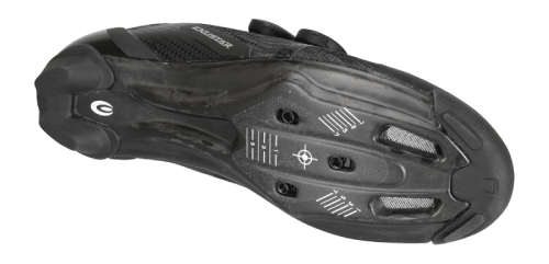 Kufre na MTB a rekreačné topánky sa väčšinou montujú na dve skrutky. Topánka na obrázku vľavo dole má dva polohovateľné rady matíc pre nájdenie optimálnej pozície nohy na pedáli. U cestných tretier je to zložitejšie. Môžu využívať aj iné systémy, takže na podrážke bývajú otvory na skrutky tri (viď obrázok vpravo dole). Stretnete sa ale aj s univerzálnou cestnou topánkou, ktorá bude mať ako dvojskrutkový, tak trojskrutkový systém uchytenia kufrov. Kompatibilitu topánky s pedálom si vždy vopred overte a pokiaľ si nebudete istí, či si tento pedál bude s touto topánkou rozumieť, spýtajte sa nášho predajcu priamo v obchode alebo nám zavolajte na infolinku Mojekolo.