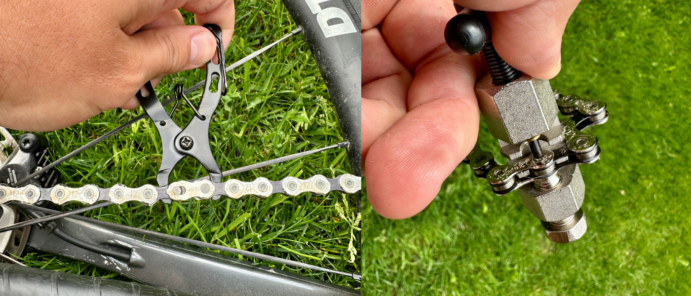 – správne náradie - nitovačku na reťaz a kliešte na rýchlospojku (quick link),