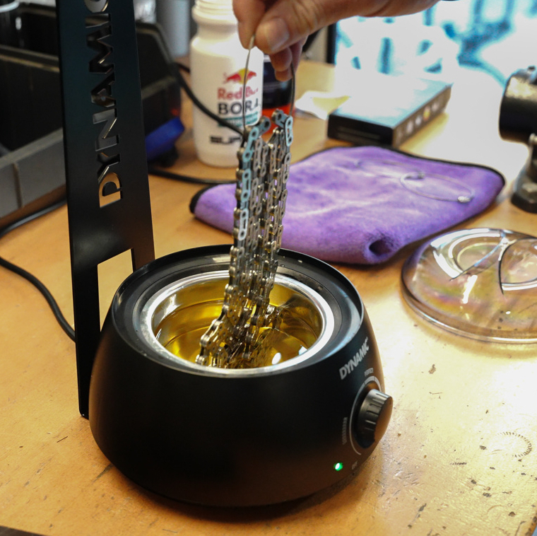 Dynamic Bike Care je holandský výrobca čističov, mazív a voskov a okrem Red Bullu dôverujú ich prostriedkom aj mechanici z tímov Alpecin-Deceuninck a FDJ–Suez. Skúsenosti z profi tímov ukazujú, že voskovanie reťaze je skvelý spôsob, ako predĺžiť životnosť pohonu, zvýšiť výkon a udržať bicykel čistý. Vďaka dostupnosti voskov a voskovacích staníc môžete horúci vosk na reťaz vyskúšať aj v domácich podmienkach. Aj keď počiatočná príprava môže byť náročnejšia, dlhodobé výhody a znížená frekvencia údržby za to stoja.