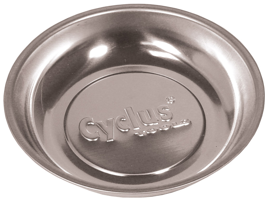 Praktická zberná miska z nerezovej ocele na uchovávanie malých dielov pri práci. Magnetická základňa, takže zostane na svojom mieste na väčšine kovových pracovných stojanov a udrží väčšinu bežne používaných dielov bicyklov v bezpečí, zatiaľ čo pracujete na bicykli.