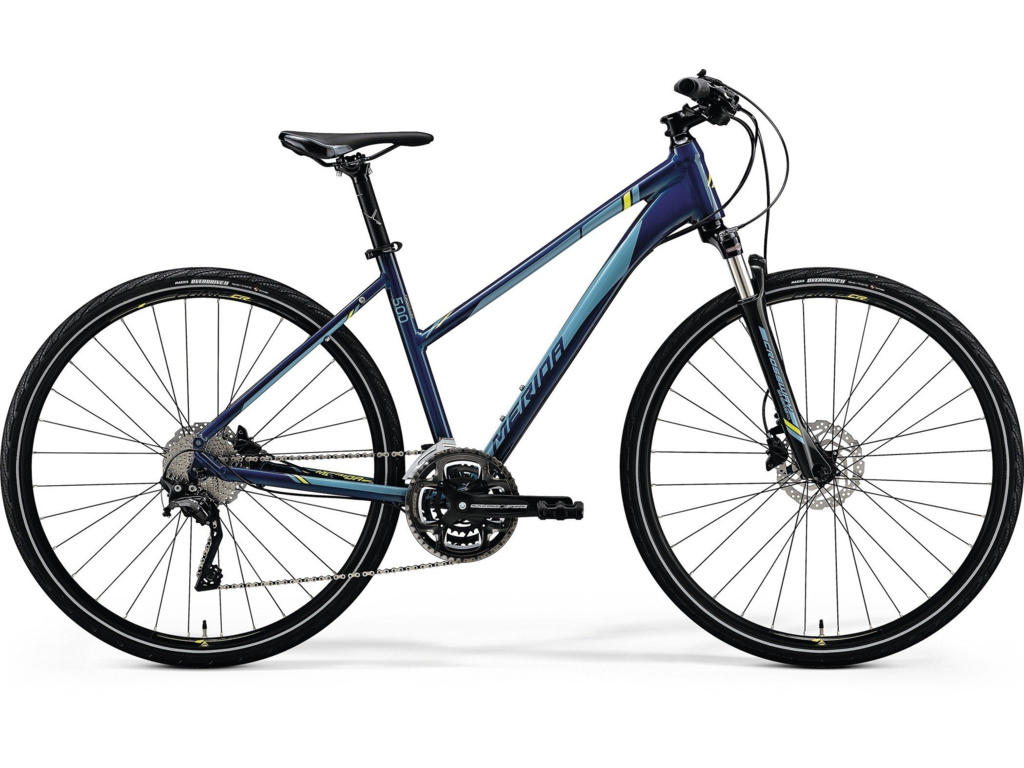 Merida Crossway 500 Lady je dobre vybavený dámsky bicykel vhodný pre tých, ktorí uprednostňujú veľmi dobrý pomer ceny a výkonu. Ľahký hliníkový rám je vybavený odpruženou vidlicou Suntour s uzamykaním z riadidiel, spoľahlivými komponentmi Shimano XT/