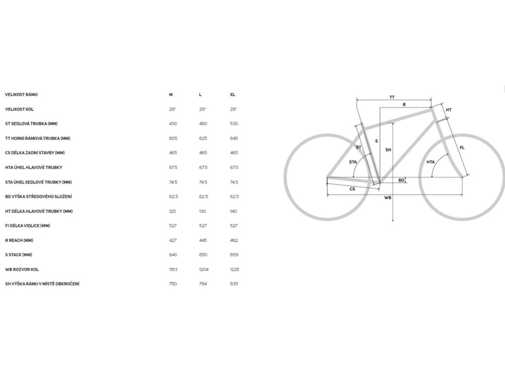 - Kľuky: Shimano CRE80-12-B; 34 ATC, Shimano FC-EM600; 165 mm for all sizes