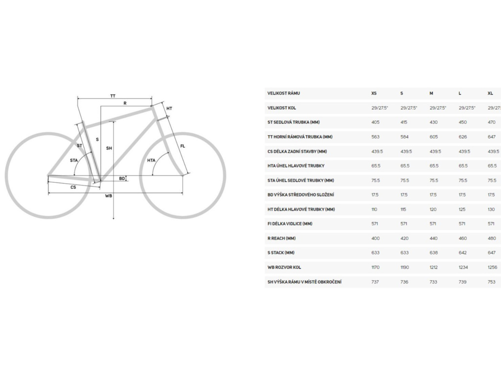 - Brzdy: Shimano SLX; 4 piston, Shimano RT64; 203 mm