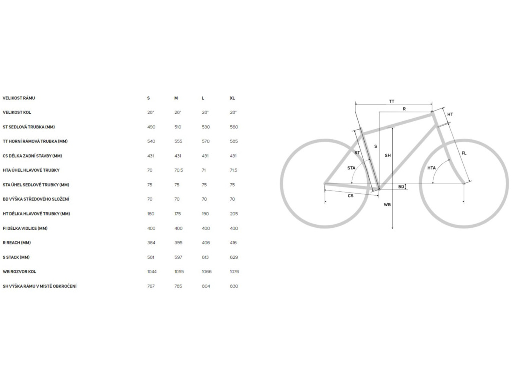 - Brzdy: Shimano GRX600; 2 piston, Shimano RT64; 160 mm