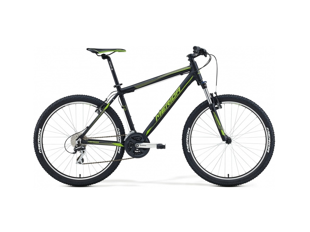 Horské kolo Merida pro rekreačně sportovní jezdce. Rám vyroben z lehké hlinikové slitiny osazen vidlicí SR Suntour XCT a komponenty Shimano s 24 převody.