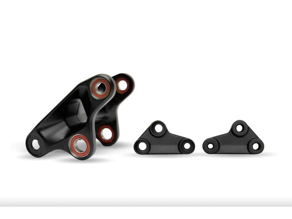 Sada Missing Link obsahuje vahadlo a dva spodné držiaky tlmičov, ktoré je potrebné nainštalovať ako sadu. Inštaláciu nájdete v montážnom návode.