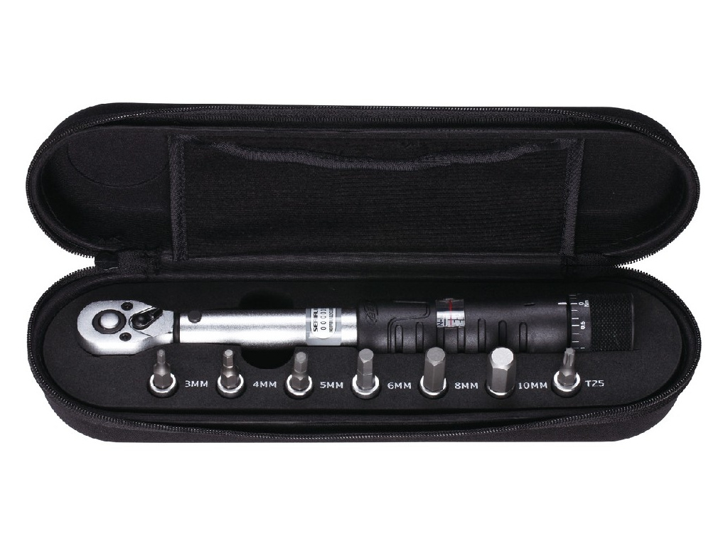 Profesionálny momentový kľúč BBB TorqueSet so zabudovaným mechanizmom Click umožňuje presné nastavenie uťahovacej sily v rozsahu 2 - 14 Nm. Súčasťou sú vybrané Náradie. Všetko je uložené v odolnom a pevnom obale.