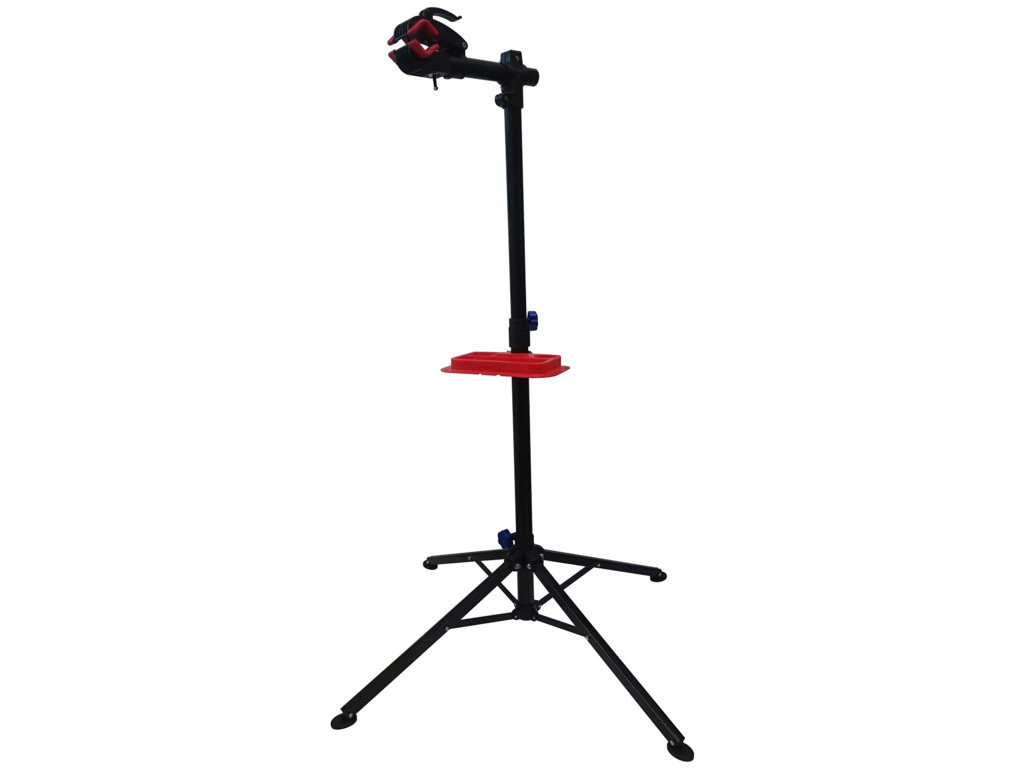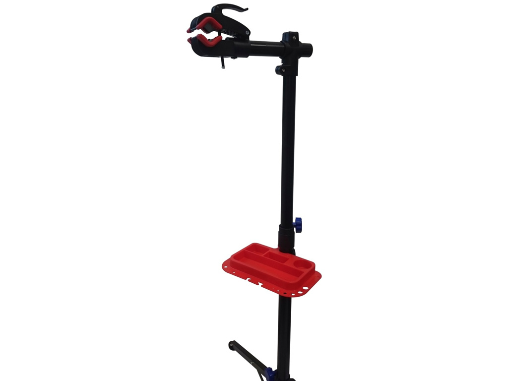 Montážny stojan na domáce použitie je vhodný na bežnú údržbu bicyklov a elektrobicyklov. Základná konštrukcia je vyrobená z oceľových trubiek, vďaka čomu je stabilná, a upínacie mechanizmy z tvrdeného plastu. Bicykel je možné uchytiť za hornú rámovú aj sedlovú rúrku. Súčasťou je praktická plastová miska na odloženie náradia.