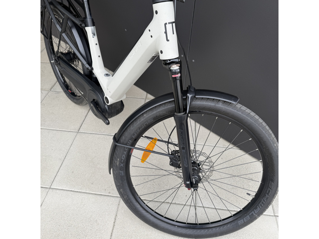 Integrovaný nábojový prevod Shimano Nexus s 5 rýchlosťami umožňuje jednoduché radenie aj pri zastavení. Predné odpruženie SR Suntour a nastaviteľné komponenty zaručujú pohodlie aj na nerovných povrchoch. Jazdu spríjemňuje displej Bosch Purion a možnosť pripevnenia praktických doplnkov, ako sú tašky.