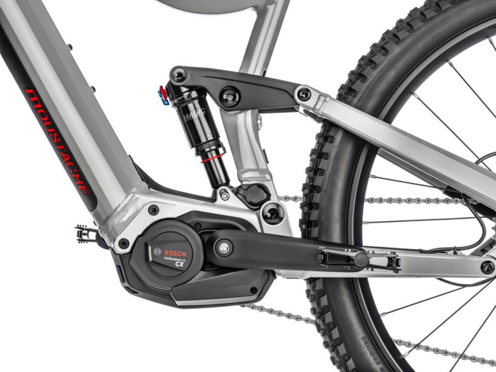 Model MOUSTACHE Samedi WIDE 5 je celoodpružené MTB elektrobicykel s hliníkovým rámom, odpružením 130 mm vpredu (Marzocchi Bomber) a 120 mm vzadu (Moustache Magic Grip Control). Poháňa ho motor Bosch Performance Line CX s krútiacim momentom až 85 Nm a batéria Bosch PowerTube 625 Wh, ktorá poskytuje dlhý dojazd. Model je vybavený hydraulickými kotúčovými brzdami Shimano a 12-rýchlostným radením Shimano Deore. Vďaka širokým 27,5" plášťom Maxxis Rekon je ideálny pre rôzne terénne podmienky. Displej Bosch Intuvia 100 s LED diaľkovým ovládaním ponúka ľahko čitateľné informácie a umožňuje pripojenie k aplikácii Bosch eBike Flow.