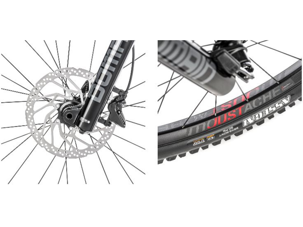 - Plášť predný: Maxxis Assegai 29x2.50 foldable EXO/TR (Tubeless Ready)