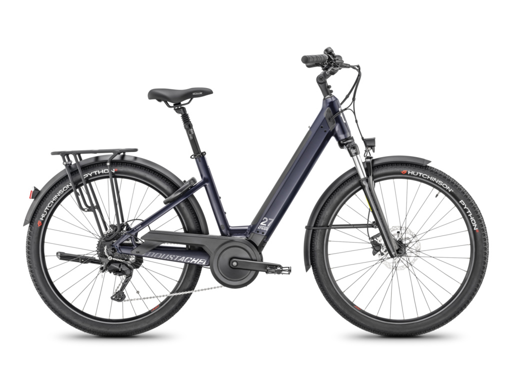 MOUSTACHE Samedi 27 Xroad 2 je všestranný elektrobicykel navrhnutý pre pohodlnú jazdu v meste aj v teréne. Je vybavený pevným rámom s integrovanou batériou Bosch PowerTube a motorom Bosch Performance Line, ktorý poskytuje výkon 250 W a krútiaci moment 75 Nm. Predná odpružená vidlica SR Suntour XCM ATB s 80 mm zdvihom zaisťuje komfortnú jazdu na rôznych povrchoch. Model je osadený 9-rýchlostnou prehadzovačkou Shimano CUES a hydraulickými kotúčovými brzdami Shimano MT200. Ráfiky Moustache s priemerom 27,5" sú obuté do plášťov Hutchinson Python 2 s rozmerom 27,5x2,10, ktoré poskytujú dobrú trakciu a nízky valivý odpor.