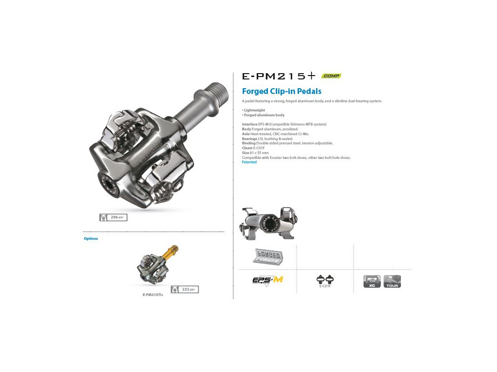Ľahké a dravé pedále Exustar PM215 MTB majú odolné kované hliníkové telo s CrMo osou a tenkým systémom dvojitých ložísk. Model PM215 ponúka pevnejšie uchytenie v porovnaní s klasickým modelom PM215. Os: Cr-MoRozmery: 81x55 mmPodložky: LSL industrial plainFarba: čiernaKompatibilné so Shimano SPD