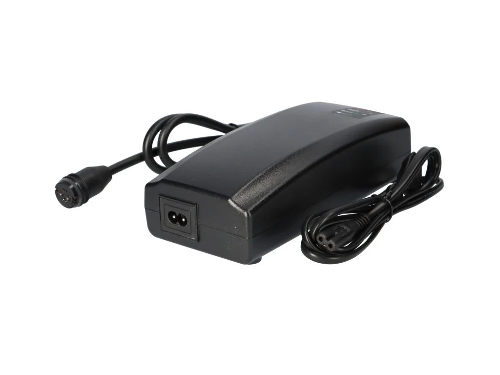 Nabíječka BMZ pro lithium-iontové baterie s nabíjecím konektorem Rosenberger. Napětí 42,0 V, nabíjecí proud 4,5 Ah.
