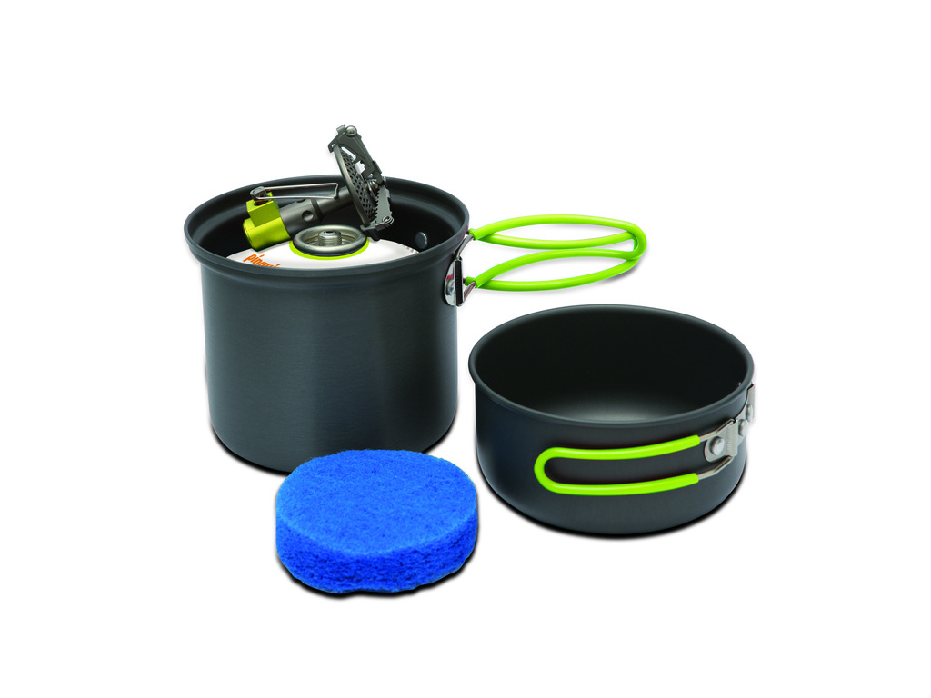 Sada kempingového náčinia pre jednu osobu.