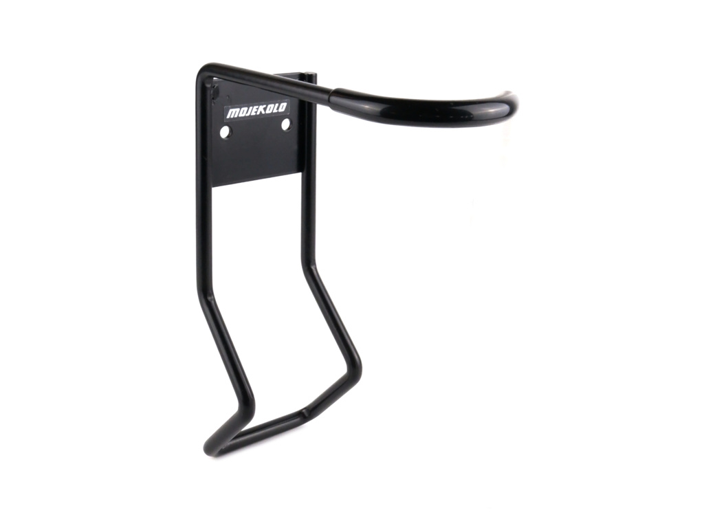 Nástenný držiak bicykla za predné/zadné koleso pre všetky typy bicyklov? To je držiak MOJEKOLO s pogumovanými koncami, nosnosťou 25 kg v klasickom čiernom prevedení.