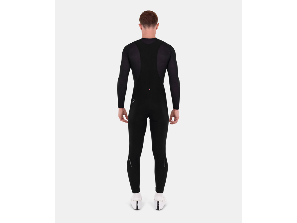 Nohavice SANTINI RTR bib sú vyrobené tak, aby vyhovovali vašim zimným tréningovým jazdám, a sú navrhnuté revolučným konceptom. Boli vyvinuté pomocou techniky farbenia hotového odevu, špičkovej techniky, ktorá produktom nielen dodáva čerstvý a módny vzhľad, ale aj výrobcovi umožňuje pokračovať na ceste k ekologickejšej budúcnosti. Odev je skutočne vyrábaný v bielej farbe a neskôr plne zafarbený do požadovanej farby. Táto technika umožňuje šetriť energiu a vodu a redukovať odpad na minimum. Teplý termofleec poskytuje vynikajúcu ochranu proti chladu. Traky nohavíc sú pohodlné a mäkké a udržujú nohavice na mieste. Model je vybavený vložkou Foam Bio, ktorá zaručuje neprekonateľný komfort.