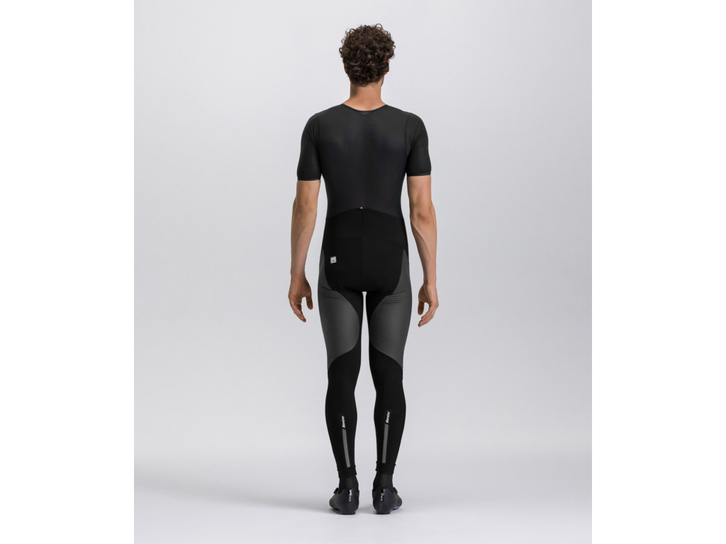 SANTINI Vega Dry sú nohavice do najextrémnejších zimných podmienok, vyrobené v inovatívnom strihu s integrovanou základnou vrstvou. Sú vodeodolné a podšité fleecom, aby vás udržali v teple a suchu pri každom šliapnutí do pedálov. Nepremokavé vložky na stehnách z tkaniny Super-Roubaix s fleecovou podšívkou a plne nepremokavou vonkajšou vrstvou z PU vás ochránia pred dažďom a nečistotami. Náprsenka sa chváli Inovatívnym strihom s integrovanou základnou vrstvou. Je vyrobená z dvojzložkového úpletu Primaloft, ktorý odvádza vlhkosť von a zlepšuje termoreguláciu, zároveň je praktická vďaka dvojitému rozopínaciemu zipsu. Bodkovaná reflexná páska na lýtkach podporí vašu viditeľnosť, a tým aj bezpečnosť, a s inovatívnou vložkou C3 s ochranným plášťom zvládnete aj dlhé hodiny v sedle.