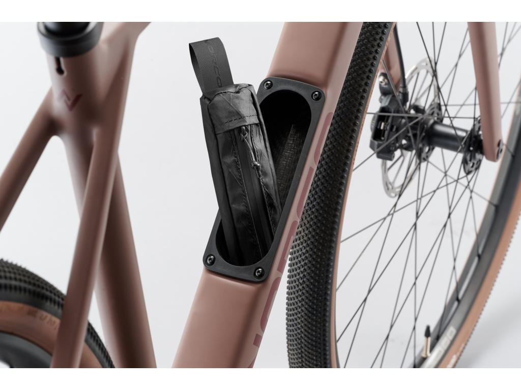 Lehké karbonové gravel kolo s integrovaným úložným prostorem a moderní geometrií pro rychlou, stabilní a pohodlnou jízdu na jakémkoli povrchu.