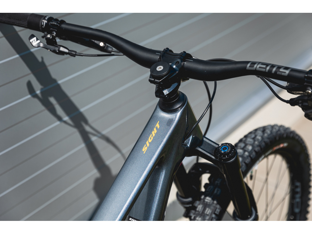 NORCO Sight C2 je našlapaný allmountain stroj, který zvýší vaši jistotu v terénu. Je neuvěřitelný při sjezdech, s obratností a jistotou zvládne jakékoli stoupání a zefektivní váš výkon. Velmi tuhý karbonový rám s progresivní geometrií doplňuje nové odpružení ROCKSHOX Ultimate 2023, které zajišťují 150 mm zdvihu vzadu a 160 mm vpředu. Pohon je v režii firmy SRAM, konktrétně zde najdeme 12rychlostní sadu GX Eagle s kazetou o rozsahu 10-52 zubů. Model je vybaven teleskopickou sedlovkou s ovládáním z řídítek, přičemž je zdvih sedlovky dle velikosti rámu od 150 do 200 mm. Precizní brzdný účinek obstarávají 4pístkové hydraulické brzdy SRAM Code RSC.