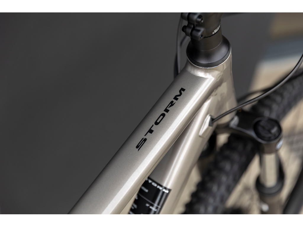 NORCO Storm 5 HD je horský bicykel kategórie Cross Country. Osadený je vidlicou Suntour XCE28, hydraulickými kotúčovými brzdami Shimano BR-MT200 a radením s 3x7 prevodmi. Rám z hliníka 6061 s pohodlnou geometriou je vhodný do terénu, ale oceníte ho aj v mestských uliciach a na cyklotrasách. Jeho menší uhol hlavovej trubky a strmý uhol sedlovej trubky zaisťujú výkonnejšie a efektívnejšie šliapanie, lepšiu trakciu pri stúpaní a väčšiu priľnavosť a kontrolu pri zjazde.