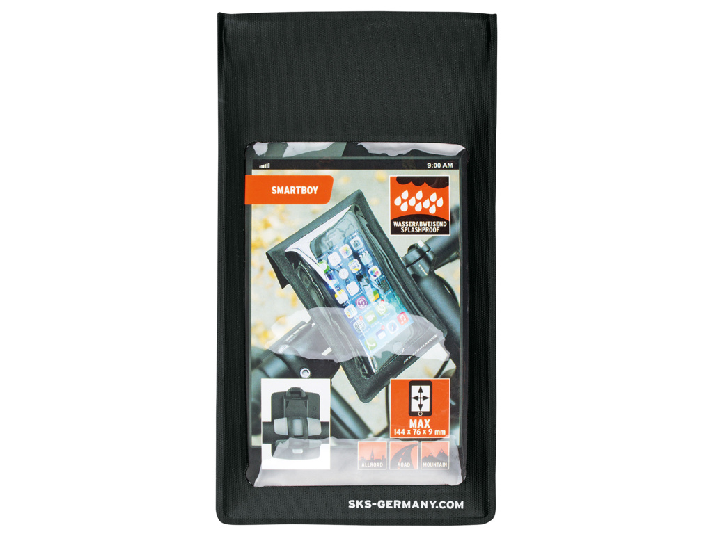 Samostatný nepremokavý obal na smartphone, ktorý sa dá použiť na držiak Smartboy. Priehľadná fólia, cez ktorú ide telefón používať.