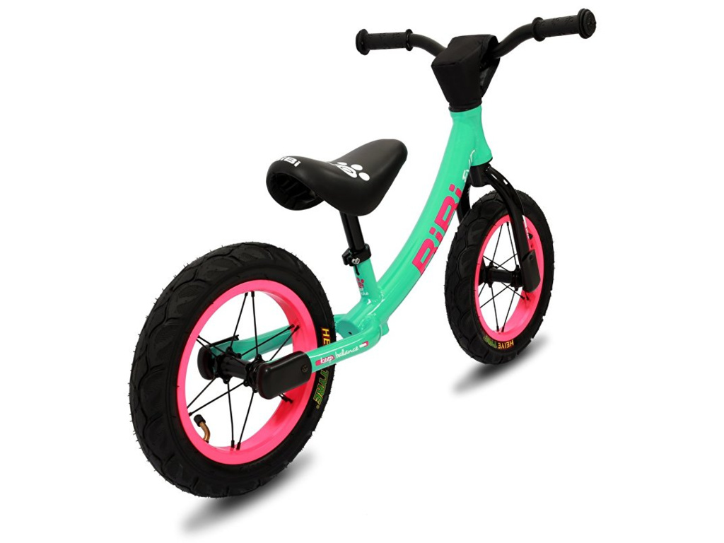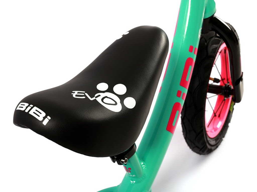 Nový detský bicykel Bibi EVO s 12" nafukovacími kolesami a špeciálnou detskou geometriou pre ľahšiu manipuláciu. Vďaka použitiu hliníkového rámu a vidlice sa môže pochváliť veľmi nízkou hmotnosťou 3,38 kg. Sedlo je nastaviteľné v rozmedzí od 32 do 42 cm od zeme.Nízka hmotnosť 3,38 kg vďaka duralovému rámu a vidliciNastaviteľné sedlo v rozmedzí od 32 do 42 cmKrytka sedla pre väčšiu bezpečnosť detíOdstávka na riadidlách zabraňujúca otáčaniu riadidielKryté matice kolies s plastovými krytkamiRadiálne rozpery kolies s 12 drôtmiNafukovacie kolesá s rozmermi 12x1,75" Zakrivené ventily pre jednoduché nafukovanie
