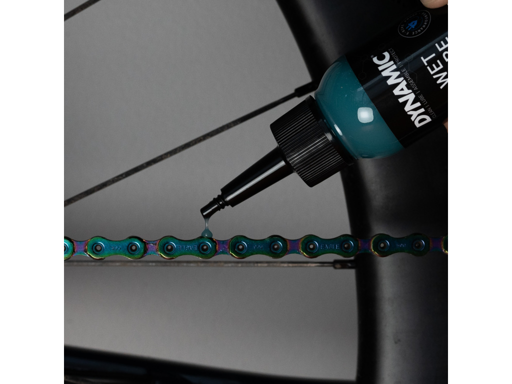 Dynamic Wet Lube je mazivo navrhnuté pre maximálnu ochranu a hladký chod reťaze aj v extrémne mokrých a blatistých podmienkach.